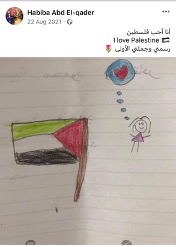 منذ سنتين، شاركت حبيبة رسمتها الأولى حول فلسطين على حسابها الشخصي، حيث كتبت “أنا أحب فلسطين”، مع رسمة معبرة عن عالمها الذي تتمناه، وتلك كانت بداية رحلتها الفنية التي قررت أن تسلكها لتصل صوتها ومعاناة شعبها للعالم.